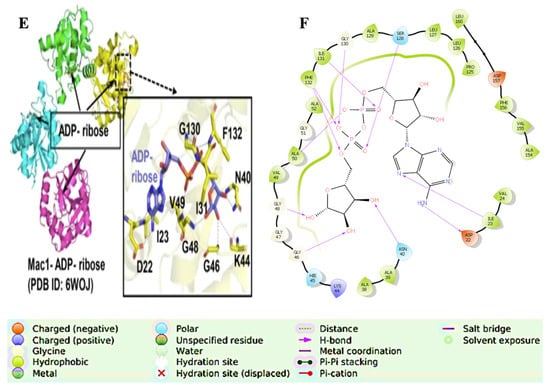 - Egloff, M.-P.; Malet, H.; Putics, A.; Heinonen, M.; Dutartre, H.; Frangeul, A.; Gruez, A.; Campanacci, V.; Cambillau, C.; Ziebuhr, J.; et al. Structural and Functional Basis for ADP-Ribose and Poly(ADP-Ribose) Binding by Viral Macro Domains. J. Virol. 2006, 80, 8493–8502. [Google Scholar] [CrossRef]