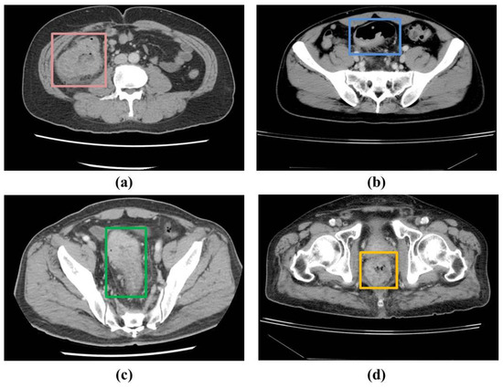 Although short segmental wall thickening with a polypoid or ulcerative appearance is characteristic of CRC, these imaging features may be subtle in CCT for early CRC. The colon is a long, tortuous, and possibly overlapping tubular organ; thus, a dedicated search is usually required to accurately detect CRC in CT. The CCT imaging features of CRC have been well established, but there is substantial overlap between the imaging presentations of benign and malignant colorectal diseases. The accuracy of CT in preoperative cancer detection is unsatisfactory, with a reported accuracy ranging from 48% to 77%. Physicians who meet patients with abdominal CT may not be professional radiologists or colorectal specialists such as colorectal surgeons, so colorectal lesions may be ignored or misdiagnosed as other diseases. This inter-variability and intra-variability in observations may create confusion among physicians, where accuracy depends on the experience and expertise of the physicians. In addition, each CT scan for a patient contains 150 slices, which must be examined manually to check for abnormality, and the whole process is tedious and time-consuming. Moreover, there are several abnormalities with similar appearances, such as diverticulitis, Crohn’s disease, ulcerative colitis, diffuse ischemic colitis, and polyp. Furthermore, the appearance and location of the colon and rectum vary in all the slices. As a result, manual differentiation of the disease is challenging since a CRC lesion often exhibits similar attenuation to the surrounding colon tissue, and there is no specific preferred location for the occurrence of the lesion. Therefore, there is a pressing need for artificial intelligence to automatically detect potential colorectal lesions in daily clinical practice within radiology.