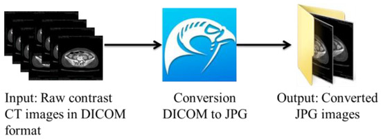 https://www.horosproject.org/) (version 3.3.6) (accessed on 20 June 2021). Using this software, all slices could be exported in a particular series to the desired format, which was JPG in our case. As shown in