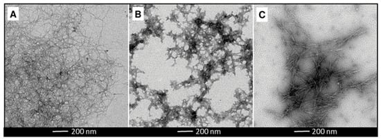 TEM images of the cellulose micro/nanofibrils dispersed in PBS. (A) TEMPO-mediated oxidation, (B) enzymatic pre-treatment and (C) cellulose nanocrystals (calibration bar = 200 nm).