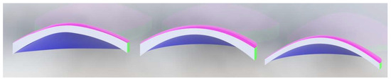 Finally, using SolidWorks software, the reconstructed anterior and posterior surfaces are imported, and the complete cornea is converted into a closed solid by joining both surfaces. In the following figure (Figure 5), the result of the reconstruction is shown, using CORNEAGA and LSQ methods, compared to the reconstruction using the NURBS zonal method of a complete and sectioned cornea: