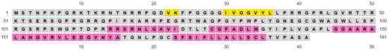 The secondary structures of HCVcp were predicted using PSIPRED (http://bioinf.cs.ucl.ac.uk/psipred/, access date: 11 April 2023) [,].