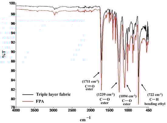 The FT-IR spectrum of the triple layer fabric in