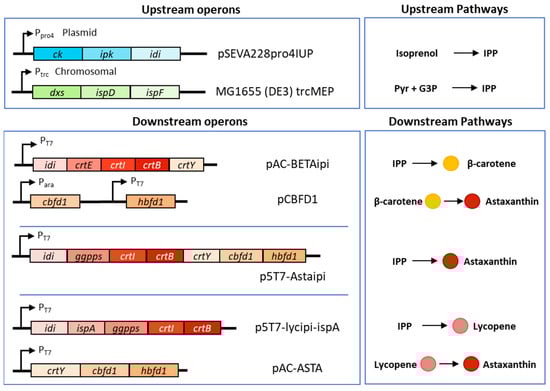 | Isoprenoid Pathway | β-Carotene Biosynthesis Genes | β-Carotene Hydroxylase and Ketolase | Specific Yield | Astaxanthin Purity | Notes | Ref. |