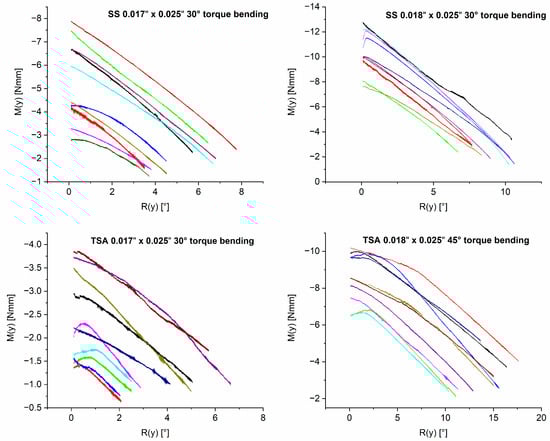 - Although higher initial moments (My) were measured for the 0.018″ x 0.025″ SS archwires, the 0.018″ x 0.025″ TSA archwires exhibited a lower moment reduction rate, indicating a reduced need for reactivation and appearing to be more suitable for applying more constant rotational moments. Due to collateral effects such as extrusive forces occurring during torque expression, the application of compensatory vertical bends should be considered.