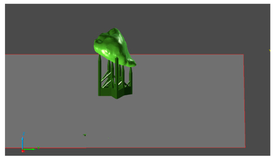 The STL model was imported into the PreForm software (Formlabs, Somerville, MA, USA), in which the replica was prepared for printing. After importing, the main parameters for production were set, and the material used and the layer thickness were chosen. The correct position of the model was determined, and the support structure was generated (Figure 3). The prepared model was then sent to the 3D printer, and the production began (Figure 4).