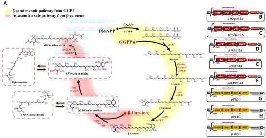 The nucleotide sequences of all artificially synthesized genes mentioned in this study can be found in the GenBank data libraries (https://www.ncbi.nlm.nih.gov/genbank/, accessed on 15 April 2023) under accession numbers: MT360309 (crtW), MT360311 (crtZ), OR402794 (bkt3), OR402795 (H-crtZ), OR402796 (cbkI), OR402797 (DGTT1), OR402798 (DGTT2), OR402799 (psy1), OR402800 (lcyb), OR402801 (Pa-crtI), OR402802 (Xd-crtI), and OR402803 (crtYB).