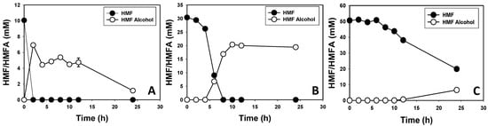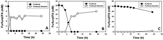 3.2. Furfural and HMF Are Largely Reduced to Their Less-Toxic Alcohols