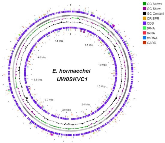 3.4. The Genomic Components of E. hormaechei UW0SKVC1 and Gene Annotations Analysis