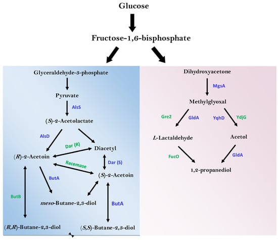 - Cui, Z.; Wang, Z.; Zheng, M.; Chen, T. Advances in biological production of acetoin: A comprehensive overview. Crit. Rev. Biotechnol. 2022, 42, 1135–1156. [Google Scholar] [CrossRef]