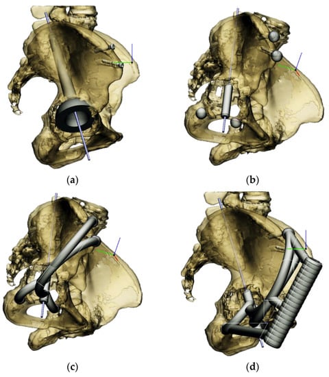 - Fisher, N.E.; Patton, J.T.; Grimer, R.J.; Porter, D.; Jeys, L.; Tillman, R.M.; Abudu, A.; Carter, S.R. Ice-cream cone reconstruction of the pelvis: A new type of pelvic replacement. J. Bone Jt. Surg. Br. Vol. 2011, 93, 684–688. [Google Scholar] [CrossRef] [PubMed]