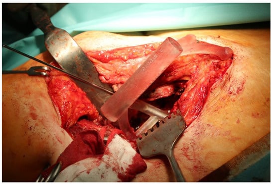 In accordance with the practices of our department, a so-called modified Watson–Jones approach was used, which provides adequate access to the target area from the anterolateral side for this type of surgical procedure.