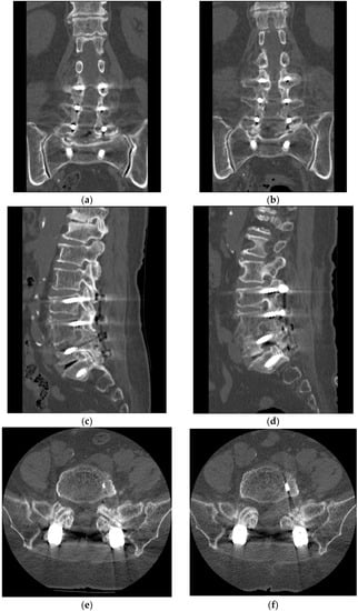 - Irmola, T.M.; Hakkinen, A.; Jarvenpaa, S.; Marttinen, I.; Vihtonen, K.; Neva, M. Reoperation Rates Following Instrumented Lumbar Spine Fusion. Spine 2018, 43, 295–301. [Google Scholar] [CrossRef]