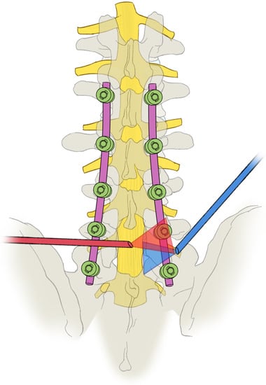 - Zekaj, E.; Menghetti, C.; Saleh, C.; Isidori, A.; Bona, A.R.; Aimar, E.; Servello, D. Contralateral interlaminar approach for intraforaminal lumbar degenerative disease with special emphasis on L5-S1 level: A technical note. Surg. Neurol. Int. 2016, 7, 88. [Google Scholar] [CrossRef]