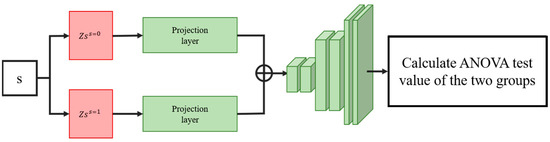 Condition-specific features of the latent variables are then concatenated by inserting hard-coded variables according to the condition of the data. This variable is used to control the conditional state of the generated data. As shown in Figure 2, we assign the variables encoded by the same cell type data into the same set and divide each set into two groups according to different conditions to find the projection relationship of different conditional homogeneous spaces. To condition the output of a condition-specific feature by inserting variables, we insert the same variable (control variable or disturbance variable for two different ANOVA tests) into both groups and input this set of variables into the projection layer, and each variable output by the projection layer is tested by analysis of variance. Restricting the projection layer will ensure that the model learns the projection relationship of different conditional spaces.
