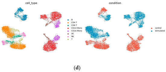 - Wei, X.; Dong, J.; Wang, F. scPreGAN, a deep generative model for predicting the response of single cell expression to perturbation. Bioinformatics 2022, 38, 3377–3384. [Google Scholar] [CrossRef]