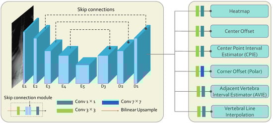 On the other hand, the combined use of landmark detection and vertebra segmentation can indirectly estimate the Cobb angle. But, the detection results can be sensitive to errors in detection and segmentation. In [48], a novel deep-learning architecture, namely the vertebra localization and tilt estimation network (VLTENet), has been proposed. This network employs tilt estimation and vertebra localization as network prediction goals, which improves the accuracy of Cobb angle estimation.