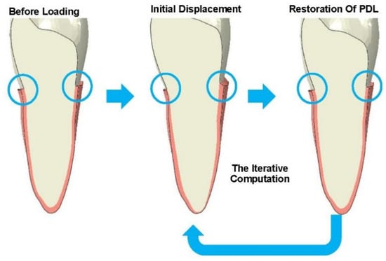 17]. This two-step calculation process was iterated to simulate the long-term orthodontic tooth movement, as illustrated in
