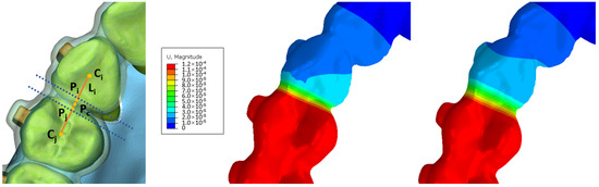 refers to the displacement control factor. By establishing the specified values, the CA within the interdental area can autonomously undergo precise adjustments, eliminating the necessity for manual remeshing, as illustrated in