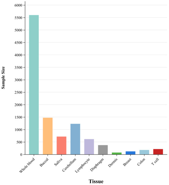 One of the leading challenges in aging research is measuring age accurately [1], which is also an essential forensic problem in determining the actual age (age calculated according to date of birth) of a sample [2]. DNA methylation, particularly 5-methylcytosine (5mC), has emerged as one of the most effective biomarkers for predicting biological age (the age determined based on the physiological status and functions of individual cells, tissues, and organ systems) [3,4,5]. DNA methylation is an important epigenetic modification that can have widespread effects on gene expression and cellular function. Changes in DNA methylation are influenced by genetic, environmental, and age factors. These changes can have an impact on disease and health, mainly due to gene expression regulation, disease risk, and environmental adaptability. Understanding the impact of these factors on DNA methylation will help us deeply understand the mechanisms of disease and provide new strategies and targets for disease prevention and treatment. Current age estimations are often performed based on DNA methylation level modeling, i.e., ‘epigenetic age (Epigeneticage)’ or ‘DNA methylation age (DNA methylationage)’ [6]. Epigeneticage acceleration (EAA) is the difference between DNA methylationage and actual age, and the positive or negative value of EAA represents the magnitude of DNA methylationage relative to actual age, indicating the exact aging degree of the individual. Due to the different living environments, tissue aging rate, and health status of individuals, there may be significant differences in the aging status group of individuals with the same actual age. So, exact age cannot comprehensively measure the aging status of the body.