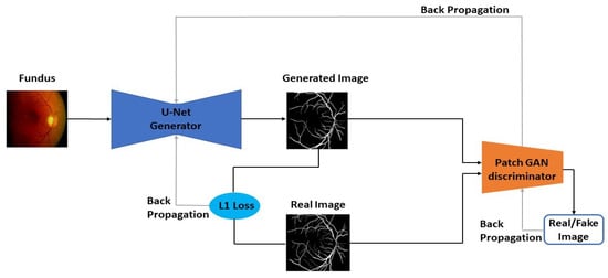 - Popescu, D.; Deaconu, M.; Ichim, L.; Stamatescu, G. Retinal blood vessel segmentation using pix2pix gan. In Proceedings of the 2021 29th Mediterranean Conference on Control and Automation (MED), Puglia, Italy, 22–25 June 2021; pp. 1173–1178. [Google Scholar]