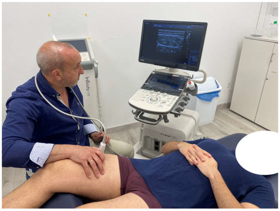 Since the measurement of the rectus femoris muscle with panoramic US requires a trained operator [27], and test–retest reliability shows less score variability if a single examiner is involved [28] based on the intra-class correlation coefficients (ICCs) reported in the literature (ICC = 0.963 to 0.991 for intra-examiner reliability, and ICC = 0.946 to 0.986 for inter-examiner reliability) [29], a single examiner with more than 10 years of experience assessing and managing musculoskeletal conditions with US was involved to conduct all the image acquisitions and measurements.