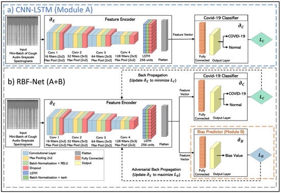 - Fakhry, A.; Jiang, X.; Xiao, J.; Chaudhari, G.; Han, A.; Khanzada, A. Virufy: A multi-branch deep learning network for automated detection of COVID-19. arXiv 2021, arXiv:2103.01806. [Google Scholar]