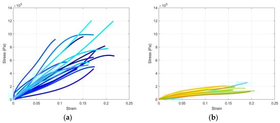 Engineering stress–strain curves: (a) circumferential direction and (b) longitudinal direction.