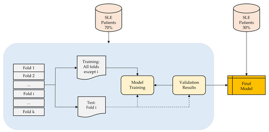 A multitude of models have been established to estimate the probability of SLE occurrence, providing a degree of confidence in differentiating it from other rheumatological disorders. These models leverage unsupervised clustering based on the nature and abundance of features, mirroring diagnostic reasoning, especially during initial patient consultations [41,42]. Certain models incorporate gene analysis techniques to improve the classification of SLE patients [19]. Recent research has delved into the utilization of machine learning techniques for SLE analysis, customizing their methodologies to the specific dataset under investigation [22,43,44]. For example, Jorge et al. [20] utilized ML techniques to predict the hospitalization of SLE patients.