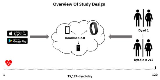 - Rozwadowski, M.; Dittakavi, M.; Mazzoli, A.; Hassett, A.L.; Braun, T.; Barton, D.L.; Carlozzi, N.; Sen, S.; Tewari, M.; Hanauer, D.A.; et al. Promoting health and well-being through mobile health technology (Roadmap 2.0) in family caregivers and patients undergoing hematopoietic stem cell transplantation: Protocol for the development of a mobile randomized controlled trial. JMIR Res. Protoc. 2020, 9, e19288. [Google Scholar] [CrossRef]