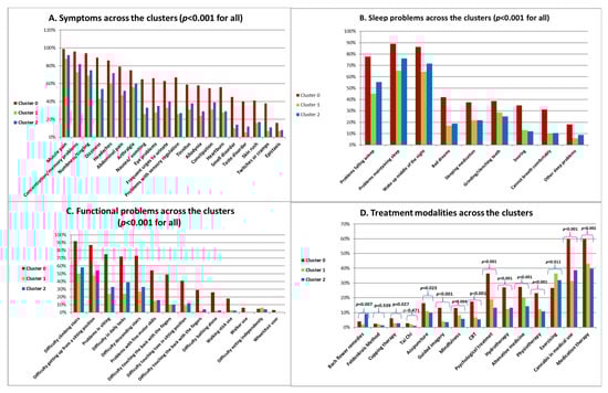 Symptoms, Sleep and Functional Problems and Treatment Modalities across the Clusters