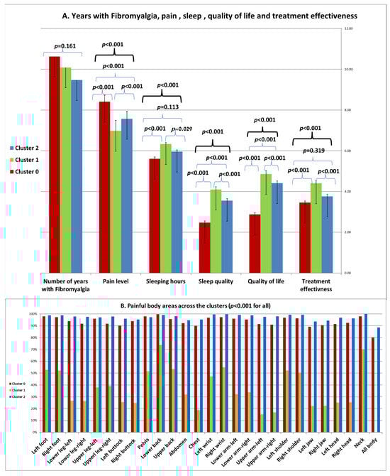 Years with Fibromyalgia, Pain, Sleep, Quality of Life and Treatment Effectiveness across the Clusters