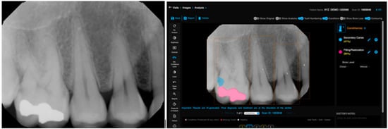 - Bonfanti-Gris, M.; Garcia-Cañas, A.; Alonso-Calvo, R.; Rodriguez-Manzaneque, M.P.S.; Ramiro, G.P. Evaluation of an Artificial Intelligence web-based software to detect and classify dental structures and treatments in panoramic radiographs. J. Dent. 2022, 126, 104301. [Google Scholar] [CrossRef]