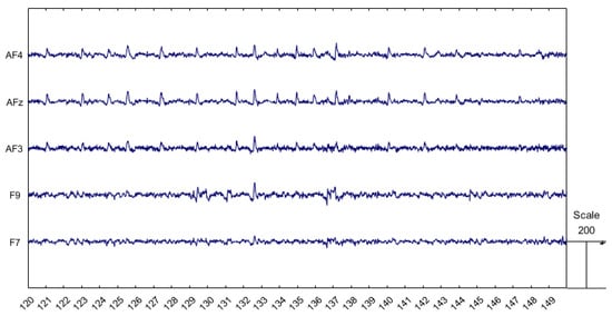 It is important to note that the influence of ocular artifacts on EEG signals is variable, and this variability depends on the position of the recording electrodes. In fact, electrodes closer to the eye location, such as the frontal ones, will be more affected by artifact influence. Thus, more specifically, Formula (1) can be written as Formula (2) [].