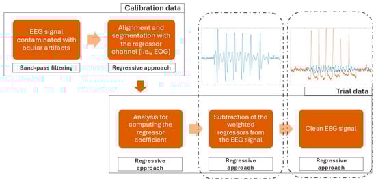 Block diagram of the principal steps for approaching the identification and correction of ocular artifacts from an EEG signal through a regression-based method.