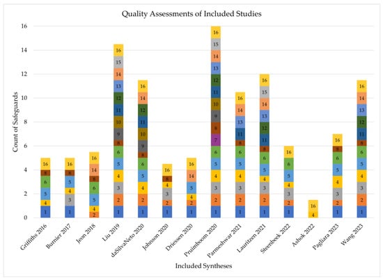 A MeaSurement Tool to Assess Systematic Reviews-2 (AMSTAR-2) was used to assess the quality of included syntheses [41]. This is a 16-safeguard tool that allows methodological measurement of the quality of systematic reviews and meta-analyses.