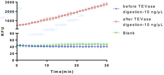 Determination of the enzyme activity of plasminogen activator before and after cleavage. Before TEVase digestion: samples before being treated with TEV enzymes; after TEVase digestion: samples treated with TEV enzymes. The data represent mean ± SD, n = 3.