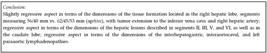 These findings underscore AI’s potential in the medical field, particularly in radiology, where it can enhance diagnostic processes. The consistent performance observed across various forms and questions indicates that the AI model analyzed is robust and versatile, capable of adapting to different types of radiological reports and producing reliable conclusions. This could improve efficiency in generating radiology reports and provide a dependable second opinion, especially in settings with limited access to expert radiologists. To substantiate these claims, we provide the model-generated conclusions (Figure 10) based on a radiology report from the validation dataset, as exemplified in the “Dataset” section (Figure 1). In conclusion, the combination of high average ratings and the results from the Turing-like quiz highlights AI’s potential to complement human expertise in radiology. This dual approach provides a comprehensive evaluation of AI’s capabilities, paving the way for future progress and the integration of AI systems in healthcare.