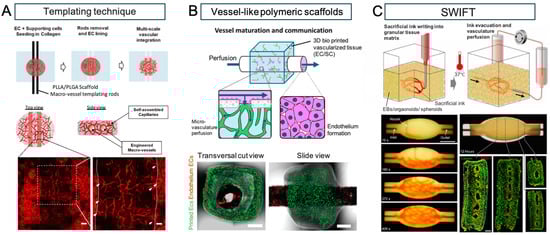 - Grigoryan, B.; Paulsen, S.J.; Corbett, D.C.; Sazer, D.W.; Fortin, C.L.; Zaita, A.J.; Greenfield, P.T.; Calafat, N.J.; Gounley, J.P.; Ta, A.H.; et al. Multivascular networks and functional intravascular topologies within biocompatible hydrogels. Science 2019, 364, 458–464. [Google Scholar] [CrossRef]