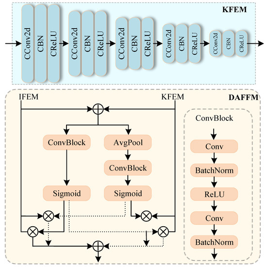 Considering that IFEM and KFEM originate from different data space features, this study designs a Dual-path Attention Feature Fusion Module (DAFFM) to enhance the fusion capability of local and global feature spaces. The proposed DAFFM is represented in orange in