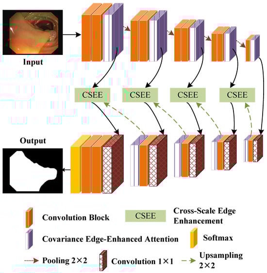 To address these challenges, we propose an edge-enhanced network (EENet) for polyp segmentation. To be specific, we design a covariance edge-enhanced attention (CEEA) module to capture edge context by attentive covariance analysis. Moreover, a cross-scale edge enhancement (CSEE) module is proposed to bridge the gap of edge context between encoded and decoded feature maps. By flexibly embedding CEEA and CSEE into the encoder–decoder framework, sufficient edge details are preserved and utilized to produce a high-certainty polyp boundary. The main contributions are as follows: