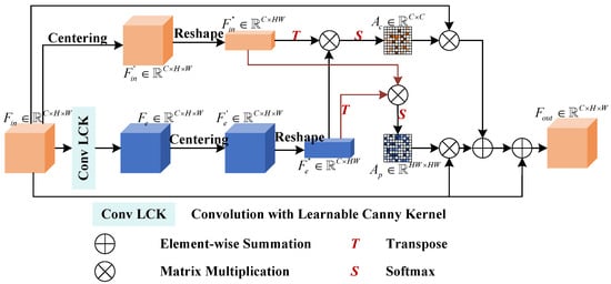Given the input feature map, , where C, H, and W represent the number of channels, height, and width, respectively, a convolution layer with a learnable Canny kernel is implemented to extract edge features from , termed as follows: