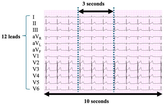 Extraction of 3 s ECG strips. We extracted 3 s, 12-lead ECG strips from the original 10 s ECG recordings. Multiple 3 s intervals were obtained as part of an oversampling strategy, determined by predefined time steps based on the left ventricular ejection fraction. See the main text for further details. ECG, electrocardiogram.