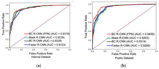 Our model outperformed Faster R-CNN and Mask R-CNN with a more precise ROI and diagnosed at a lower positive rate (Figure 8).