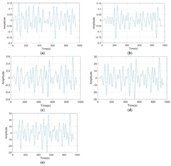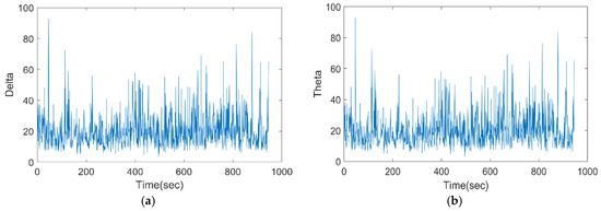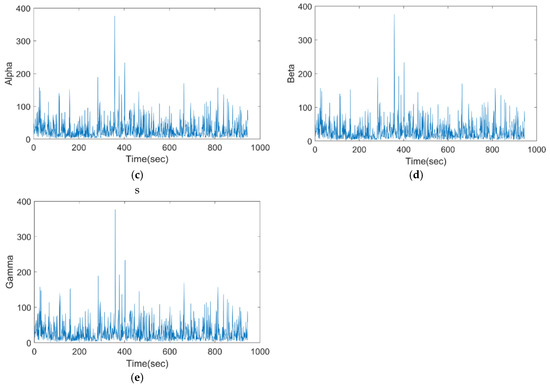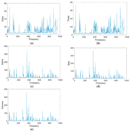 Pre-processed EEG of the proposed model for (a) delta, (b) theta, (c) alpha, (d) beta, and (e) gamma.