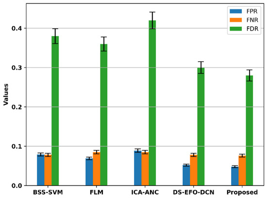 Comparison of the FNR, FPR, and FDR of the proposed model.