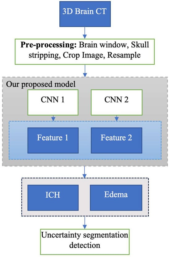 Tran AT, Desser D, Zeevi T, Abou Karam G, Dierksen F, Dell’Orco A, Kniep H, Hanning U, Fiehler J, Zietz J, et al. A Hybrid Transformer-Convolutional Neural Network for Segmentation of Intracerebral Hemorrhage and Perihematomal Edema on Non-Contrast Head Computed Tomography (CT) with Uncertainty Quantification to Improve Confidence. Bioengineering. 2024; 11(12):1274. https://doi.org/10.3390/bioengineering11121274