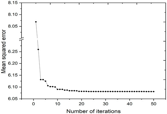During image registration in PSO, the particle signifies the transform parameter underestimation. The corresponds to the minimum MSE (i.e., the cost function) for each particle [46,47]. The determination of is based on the cluster MSE.