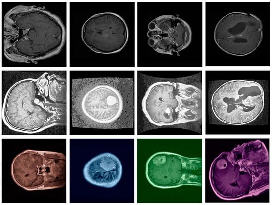 - Rasheed, Z.; Ma, Y.K.; Ullah, I.; Ghadi, Y.Y.; Khan, M.Z.; Khan, M.A.; Abdusalomov, A.; Alqahtani, F.; Shehata, A.M. Brain tumor classification from MRI using image enhancement and convolutional neural network techniques. Brain Sci. 2023, 13, 1320. [Google Scholar] [CrossRef]