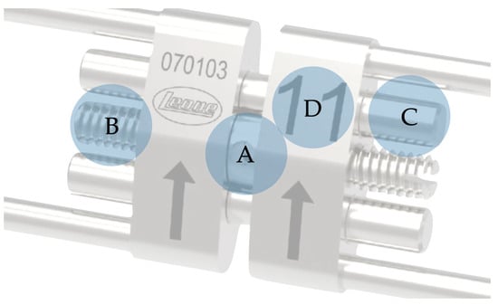 - Perforated Cylinder: The perforated cylinder, encircling the leadscrew, is rotated to induce expansion. Featuring four holes, each turn of the key corresponds to a quarter turn of the cylinder. Each activation corresponds to 0.2 mm of expansion; thus, completing a full cycle of four turns results in a total expansion of 0.8 mm.